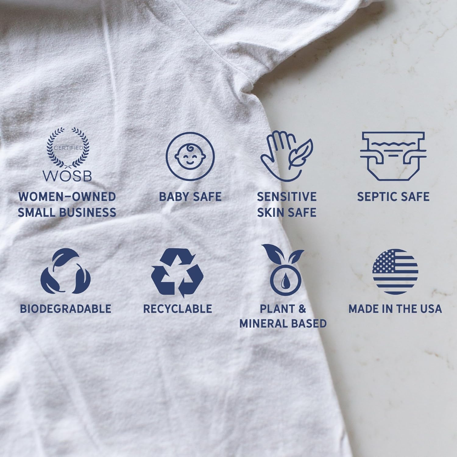 Our fragrance-free laundry detergent is powerful at its core. With additional stain-fighting ingredients compared to other non-toxic detergents, it works wonders on clothing; leaves them smelling fresh without any added essential oils. Clean, simple, and crazy effective.